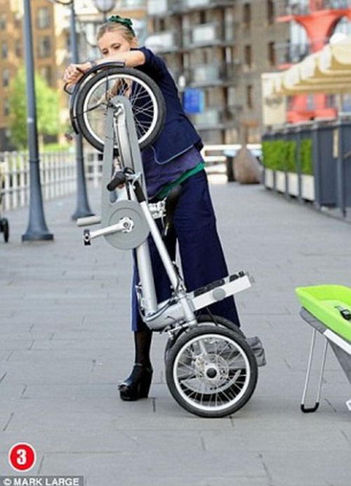 Этот новый оригинальный велосипед, который одновременно может быть коляской, позволят с лёгкостью ездить даже в общественном транспорте(метро, автобусе). Кроме этого можно свободно ходить по магазинам, посещать кафе.