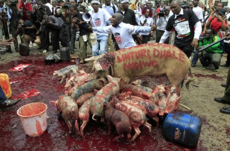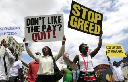 В Найроби, столице Кении, прошли демонстрации против закона о повышении платы депутатам местного парламента.Протестующие пришли к зданию, в котором работают недовольные оплатой своего труда народные избранники не только с плакатами, но и свиньями. Свиней для пущего эффекта облили их же кровью. Несогласованная акция протеста вызвало недовольство полиции, которая применила против демонстрантов дубинки и водометы. Несколько человек задержано.
