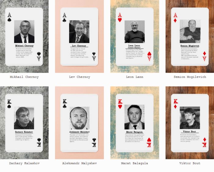 Хотите верьте, хотите нет, но в США выпустили игральные карты под названием "Русская мафия". На каждой карте - портрет какого-то из представителей организованной преступности России. Это, видимо, чтобы знать врага в лицо)) Выпустил эти карты Институт исследований России(есть у них и такой, оказывается)и подарены они будут конгрессменам, стражам порядка и прочим представителям спецслужб.