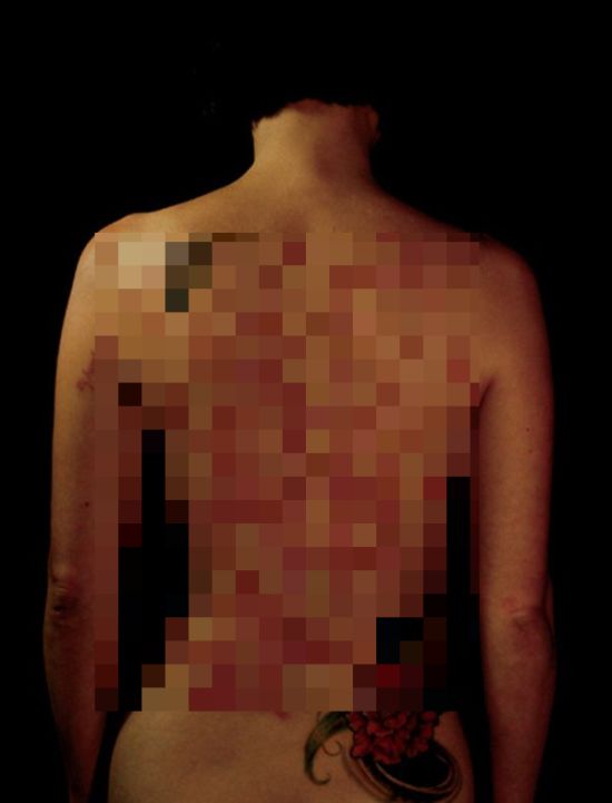 На спину Анжелы профессиональным татуировщиком была нанесена необычная татуировка без использования туши, а именно - 39 обрывков из библейских молитв. Что самое интересное, через неделю от такого тату не останется и следа, хотя смотрится оно весьма креативно.